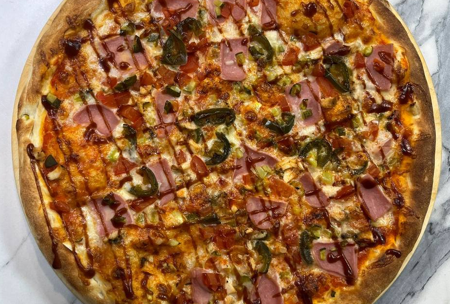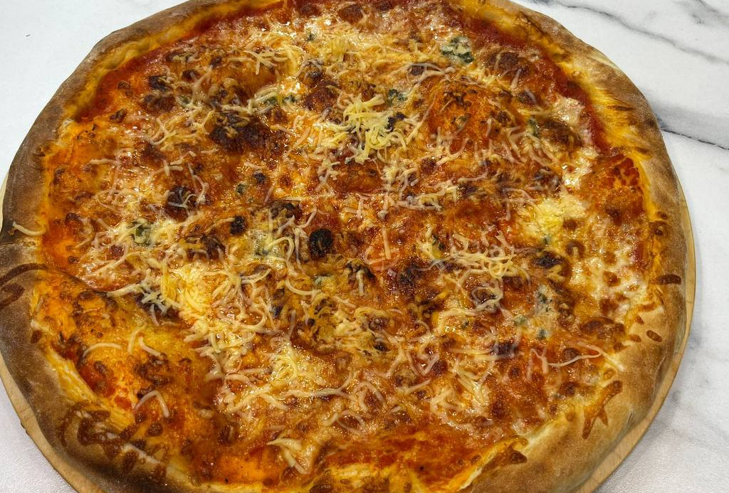 Пицца соус, сыр пармезан, сыр гауда, сыр дор блю, сыр моцарелла.